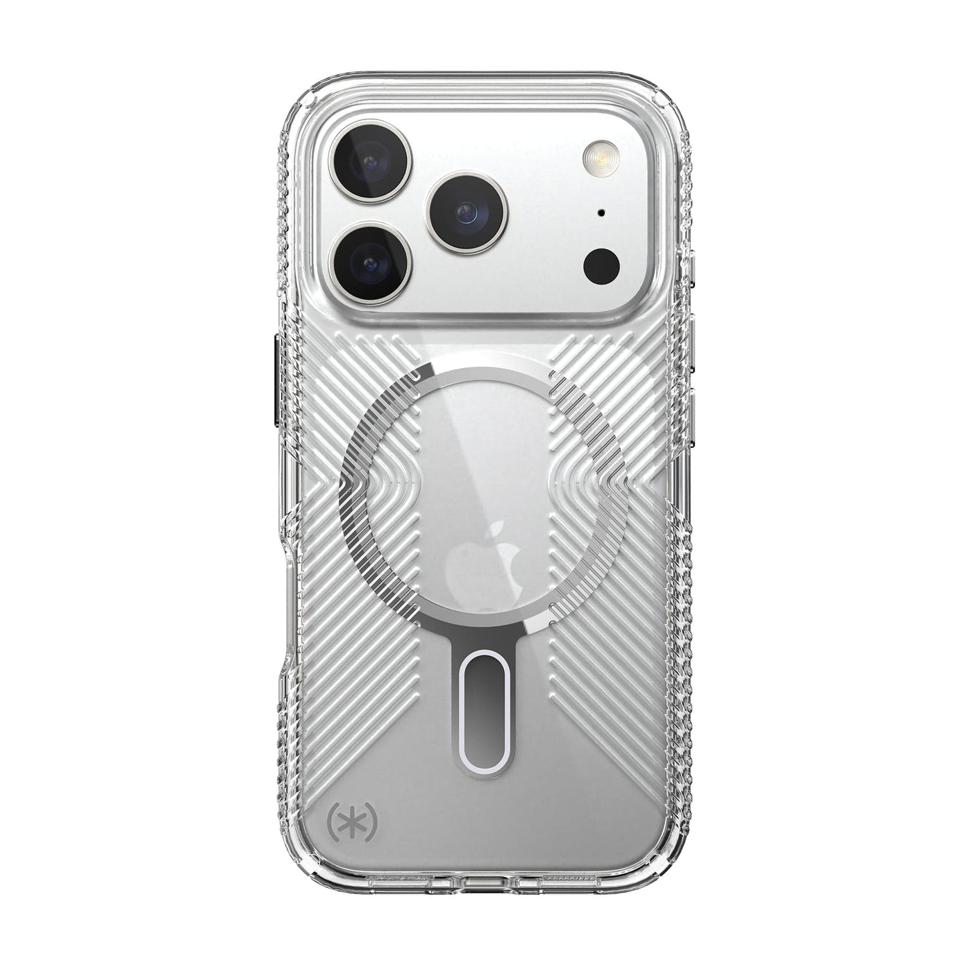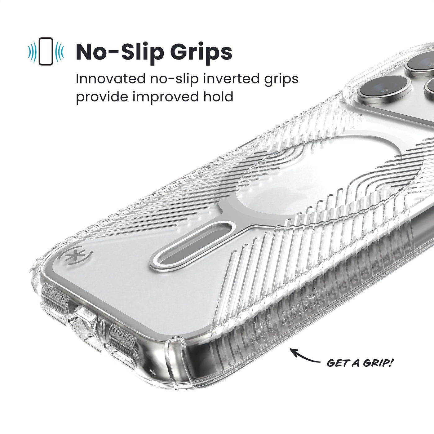 Presidio® Perfect-Clear Grip MagSafe® with ClickLock™ Interlock technology is our most protective case that we’ve ever designed. Our innovative new ClickLock™ Interlock no-slip technology allowed us to create a case that enhances MagSafe® Speck products. ClickLock™ Interlock no-slip technology has a bolt that locks accessories onto your phone or your phone into place creating less friction and therefore less chance of slippage. This case now features a new button design that provides a more satisfactory click and tactile response.